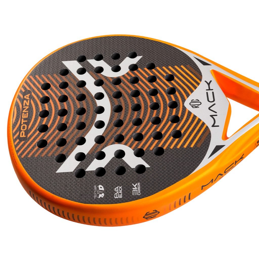 The New POTENZA is a round-shaped paddle racket, high-power, with a 3D surface. Its core is made of EVA Black Medium foam, covered with 3K carbon fiber and a 100% carbon fiber tubular frame, now narrower, which allows for a broad sweet spot. It’s a control paddle for the back of the court with power at the net, featuring a sweet spot across the entire surface, and a medium balance.